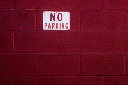 No parking sign on painted brick wall