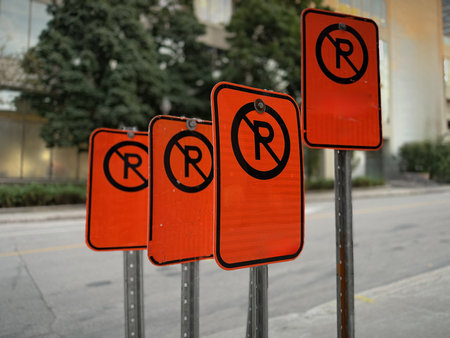 Many Temporary No Parking Traffic Signs at Street