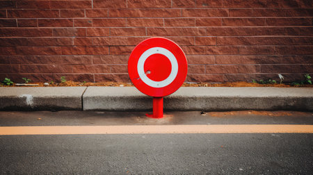 A striking red no parking sign stands against a minimalist white brick wall, highlighting traffic regulations in an urban space. Ideal for showcasing compliance themes.
