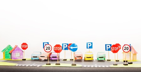 Play set of road signs and paper cars models