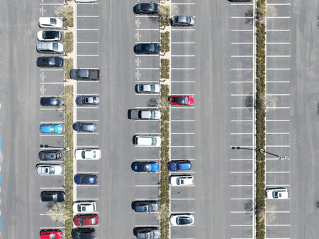 Parking symmetry: An aerial perspective of parked cars forming a symmetrical pattern, exemplifying precision and repetition.