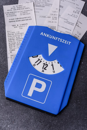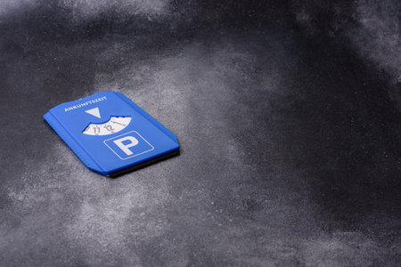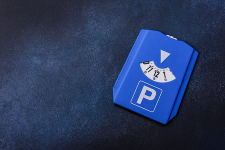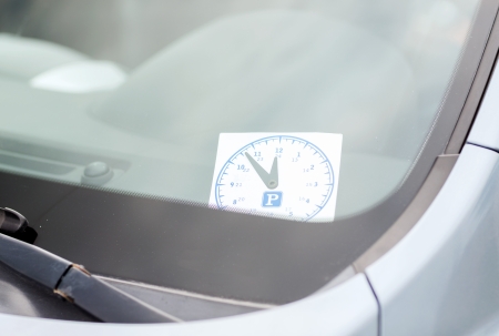 Parking disc for windshield. Limited time parking system in european countries. Concept of parking time count in busy parking lots