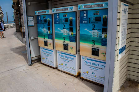 Tel Aviv, Israel - March 06, 2022 Safety and sports facilities on the main beach of Tel Aviv in Israel, the white sand beaches receive visitors from all over Israel, but also from all over the world