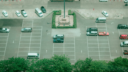 Parking symmetry: An aerial perspective of parked cars forming a symmetrical pattern, exemplifying precision and repetition.