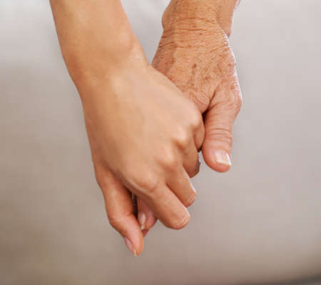 Holding on till the end. Cropped shot of a young woman and a elderly woman holding hands.