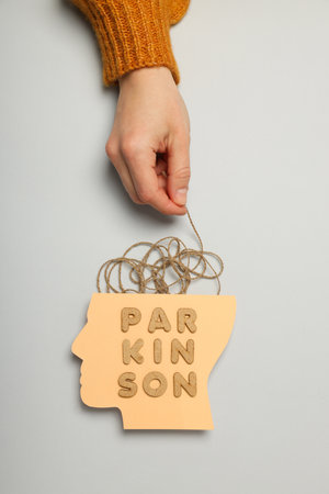 Board with text PARKINSON'S DISEASE and medicines on table