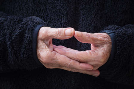 Close-up Of wrinkled hands elderly woman.