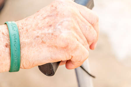 Senior Man Holding Cane. Close-up Of old man Hands On Walking Stick. Hand of a old man holding a cane. Toning.