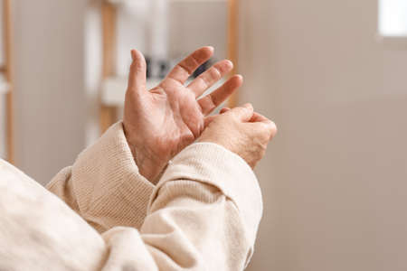 Hands of elderly woman at home