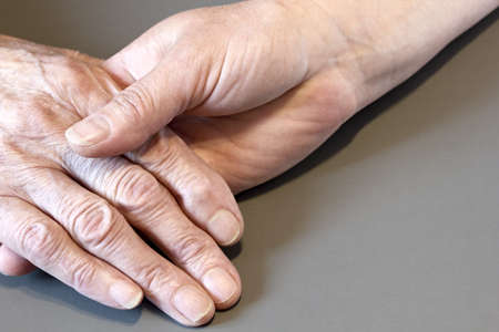 Hands of a grandmother and her adult daughter. Two generations. Body parts.