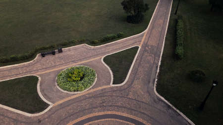 palace garden seen from above bird eyes view sunny day