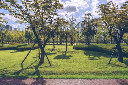 View of green grass and trees in Busan citizens park