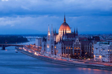 Budapest. Hungarian parliament in Budapest during twilight blue hour.