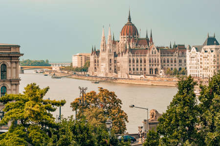Beautiful view of Budapest's Parliament. Parliament Building on the Danube River in Budapest. Hungary Budapest.