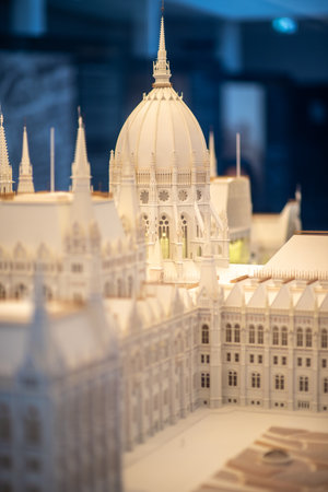 Small model of the Hungarian Parliament Building Orszaghaz, seat of the National Assembly in Budapest, Hungary on 8 May 2023