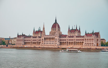 The building of the Hungarian Parliament in Budapest at the river Danube, Hungary