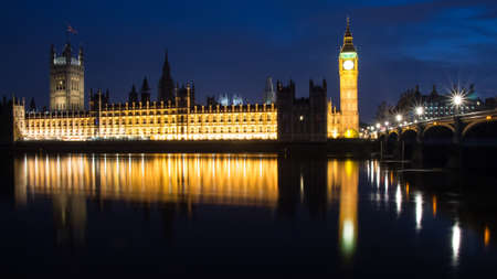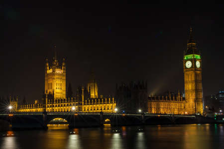 The Houses of Parliament, Big Ben and Westminster Bridge over the River Thames, London, England at Night