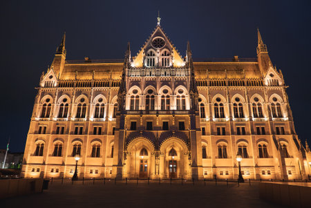 Budapest iconic Parliament building illuminated at night