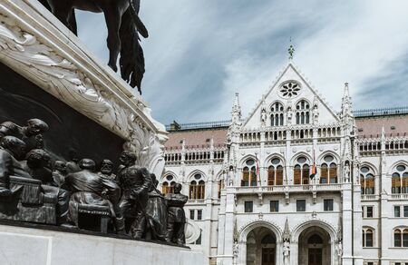 close up on Hungarian Parliament and Kossuth Lajos square
