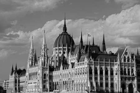 Black and white full screen view on the Parliament in Budapest