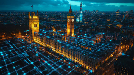 UK Parliament Connected Houses of Parliament Illuminated in a Futuristic Network of Digital Dots
