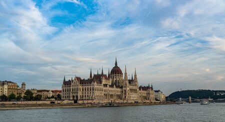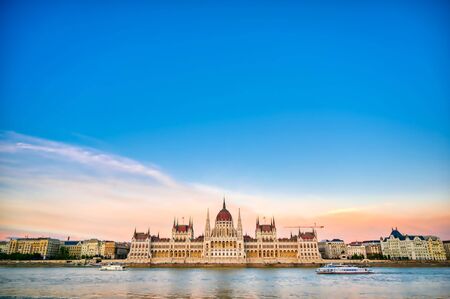 Landscape panorama in sunset view capital of Hungary with Budapest parliament building