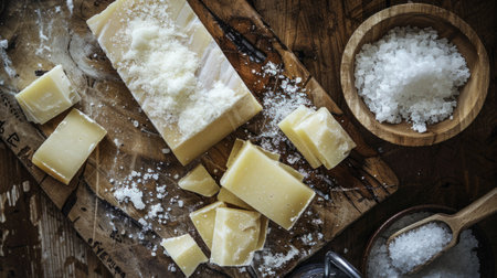 dairy and rustic farm food styled concept - shredded parmesan cheese, elegant visuals
