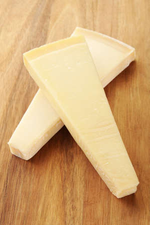 Big wedges of parmigiano-reggiano parmesan hard Italian cheese made from cow milk or Grana Padano close up