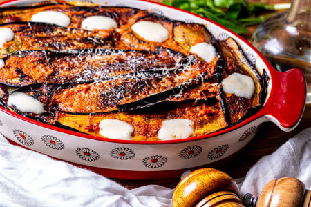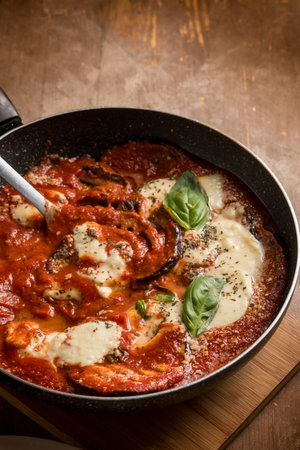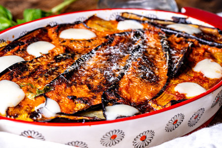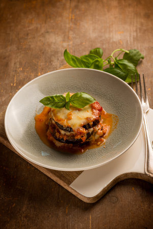 Parmigiana di melenzane, traditional neapolitan dish of italian kitchen