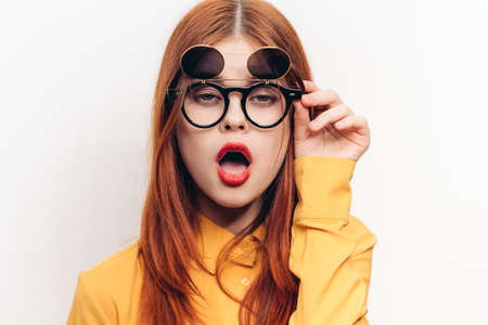 beautiful woman wearing a panama hat and glasses posing Studio Model unaltered