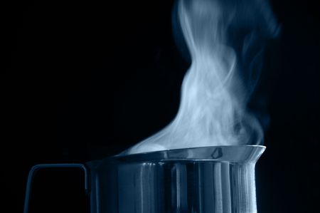 Steel jug with boiling water smoke