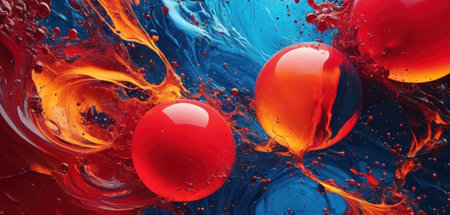 3d render of abstract fluid background with red and orange balls.