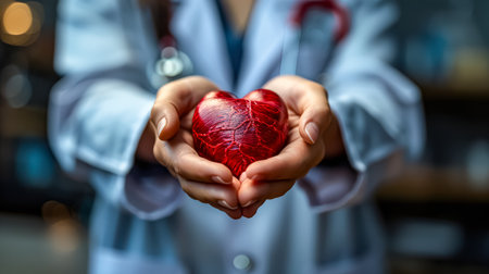 Medical professional holds realistic heart in hands, symbolizing care and compassion in healthcare