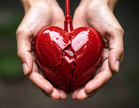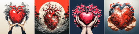 Red color heart with stylish design, holding it with two hands. Symbolizes love, care and connection. A unique and attractive visual representation of emotions.