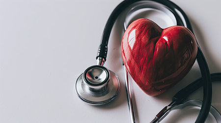 Medical Stethoscope Embracing a Glossy Red Heart on a White Background Signifying Health Care