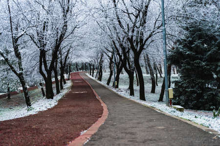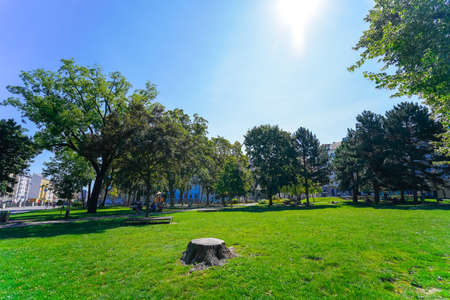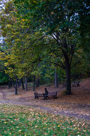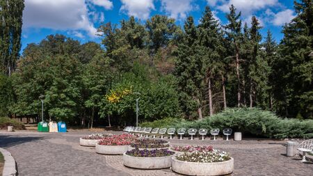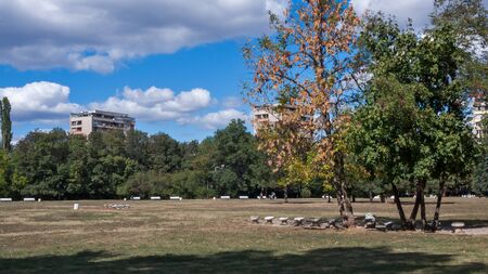 SOFIA, BULGARIA - SEPTEMBER 26, 2018: Landscape with Trees and gardens at South Park in city of Sofia, Bulgaria