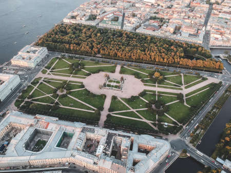 Aerial photo of the Champ de Mars, downtown, St. Petersburg, Russia.