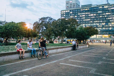 Tel Aviv Israel October 27, 2020 View of unidentified Israeli people sitting in the streets of Tel Aviv during lockdown and Coronavirus outbreak to enforce containment of the population in Israel