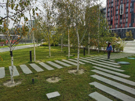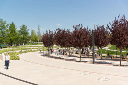 Krasnodar, Russia-may 02, 2021: People walk in a well-maintained city park on a sunny day.