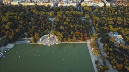 flight drones over the famous Park of the Retiro of Madrid