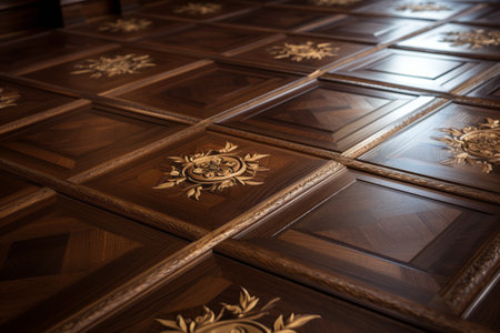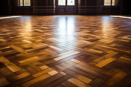 close-up of a wooden parquet flooring with intricate patterns, created with generative ai