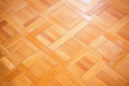 flat-lay of freshly varnished diagonal parquet floor, created with generative ai