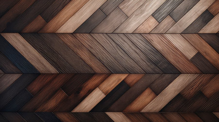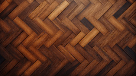 Close-up of herringbone parquet texture with natural wooden tones and patterns