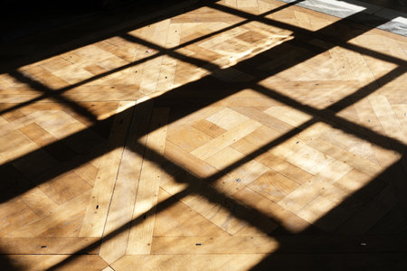 modern artistic pattern on a wooden parquet floor, created with generative ai