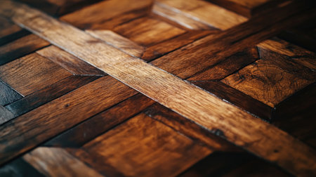 Close-up of wooden parquet flooring, showing intricate texture and pattern. Ideal for interior design projects and architectural concepts, empty space for the text, Generative AI.