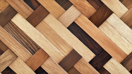 A close-up view of a beautifully woven wooden texture, presenting warm earthy tones and intricate patterns perfect for artistic projects and interior design applications.