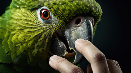 A close up of a colorful parrot with bright green and blue feathers, AI