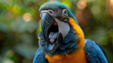 Portrait of a beautiful macaw parrot with open mouth.