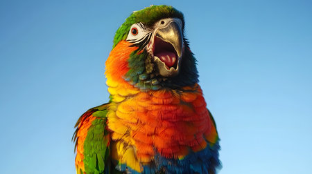 Colorful macaw parrot screaming in bright blue sky nature scene wildlife photography vibrant environment close-up view
