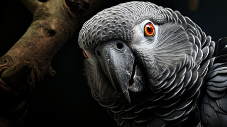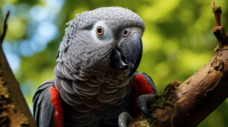 Portrait of an African Gray Parrot on a tree branch.